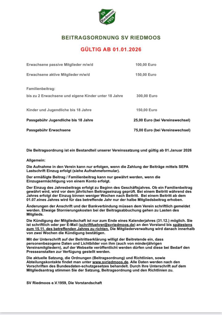 Ihr Sohn/ Ihre Tochter möchte Spieler/In beim SV Riedmoos werden?